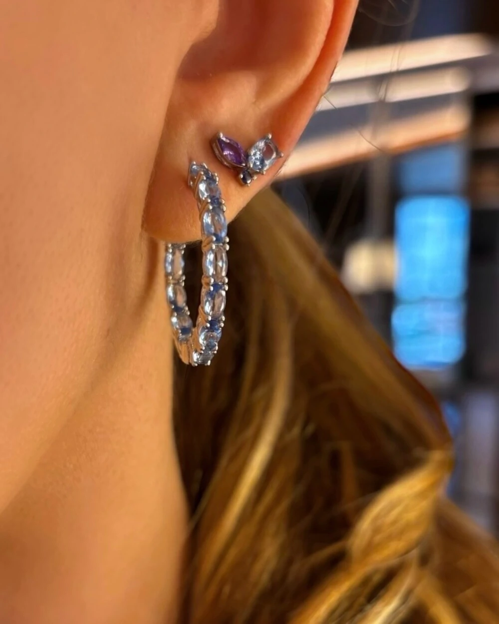 Brinco argola pedras dentro e fora material- metal de liga comum com banho de ródio
