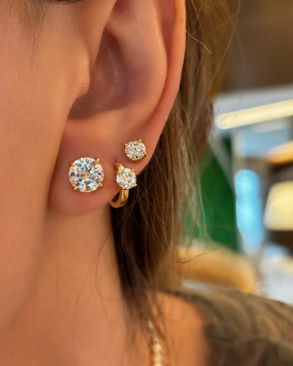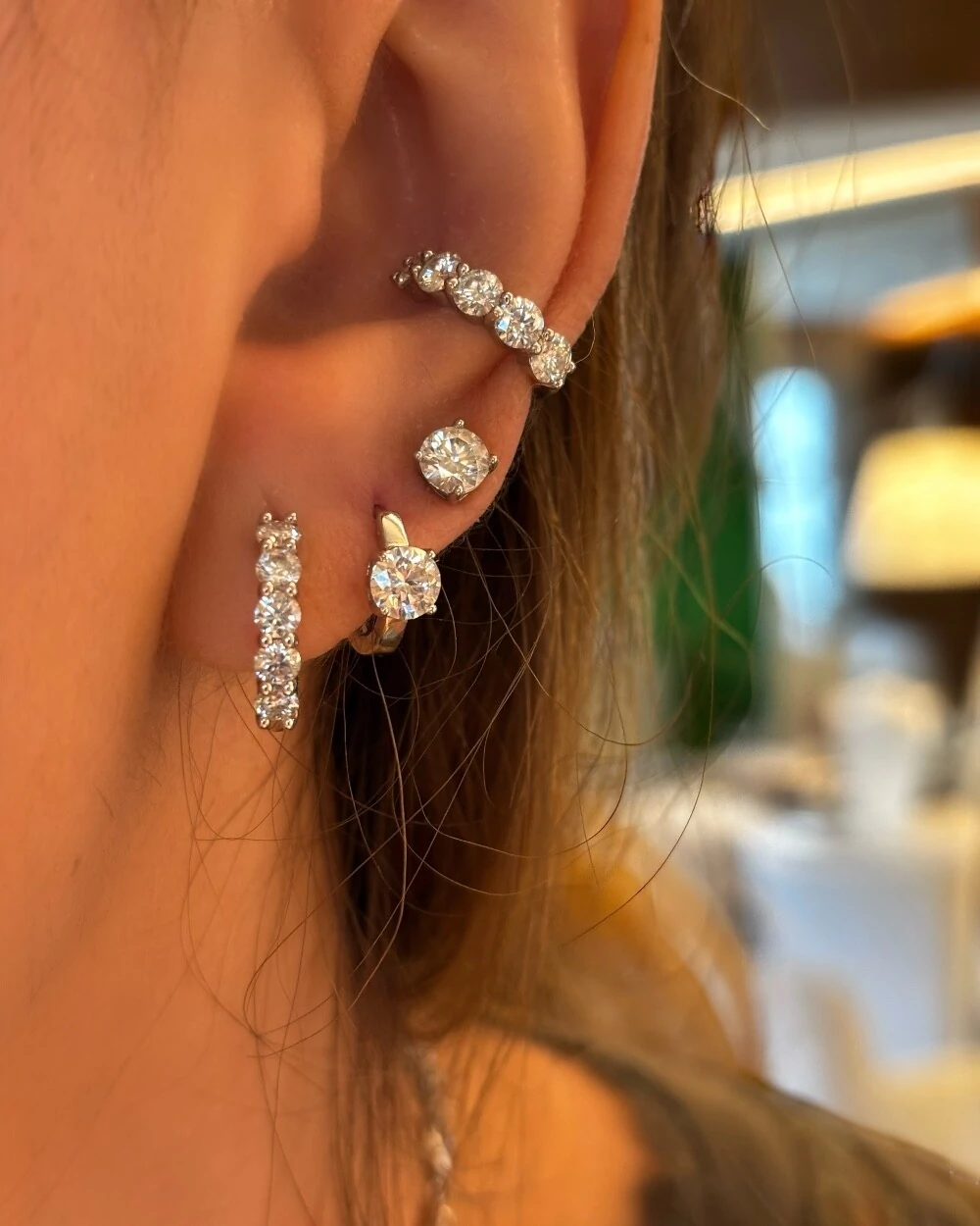A união perfeita entre o clássico e o moderno. Esta argolinha destaca-se pelo brilho puro da moissanite, ideal para um toque de luz discreto e refinado.